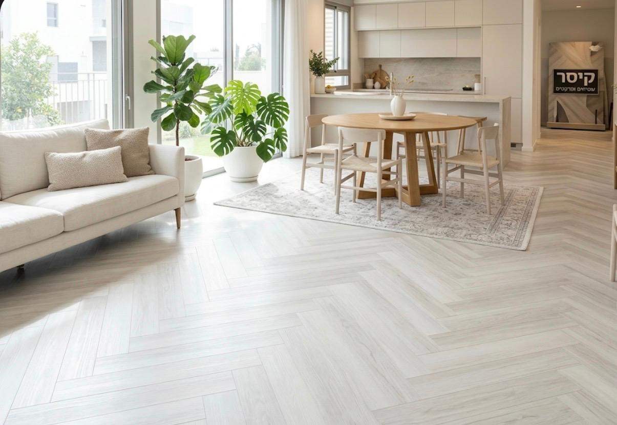 פרקט פולימרי פישבון לבן פנינה